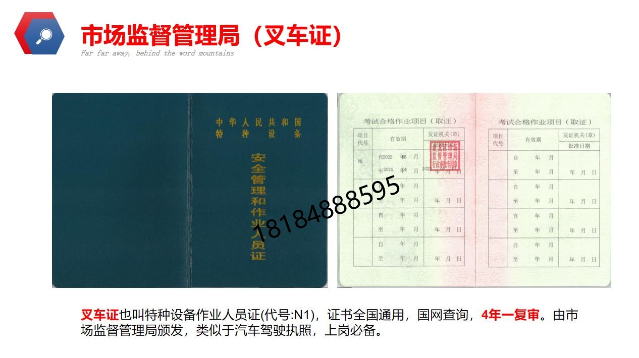 4.领取证书:考试成绩公布后,合格的考生可在两周后领取叉车证。 《特种设备安全管理和作业人员证》证书查询官网(全国特种设备公示信息查询平台): 全国特种设备公示信息查询平台官网网址 http://cnse.samr.gov.cn/ 点击进入官网查询