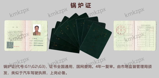 工业锅炉司炉G1:额定工作压力≤0.4MPa、额定蒸发量≤0.5t/h的蒸汽锅炉、额定功率≤0.7MW的热水锅炉,搭载有机热锅炉;适用场景常见于小型工厂、学校、医院等场所。